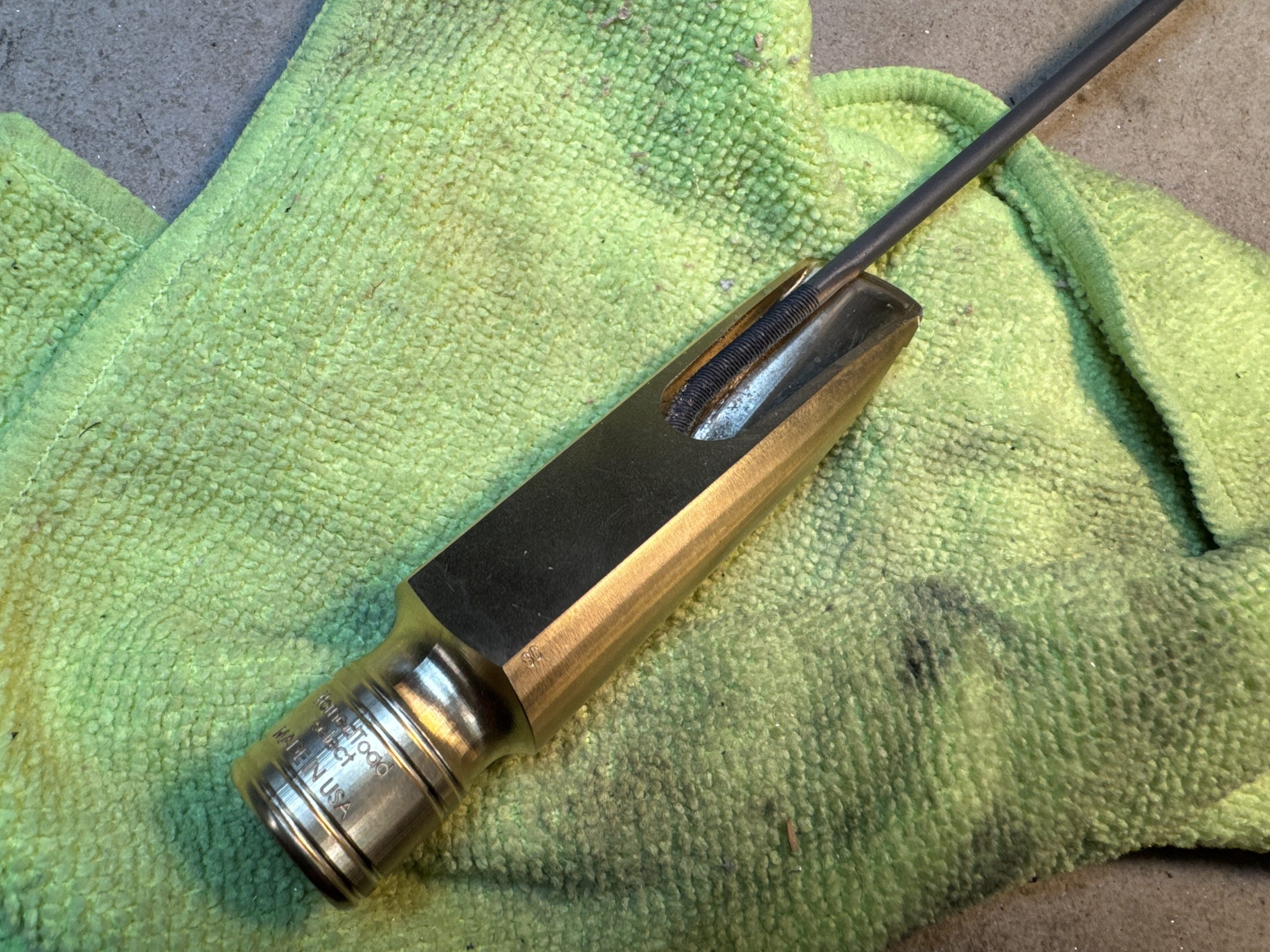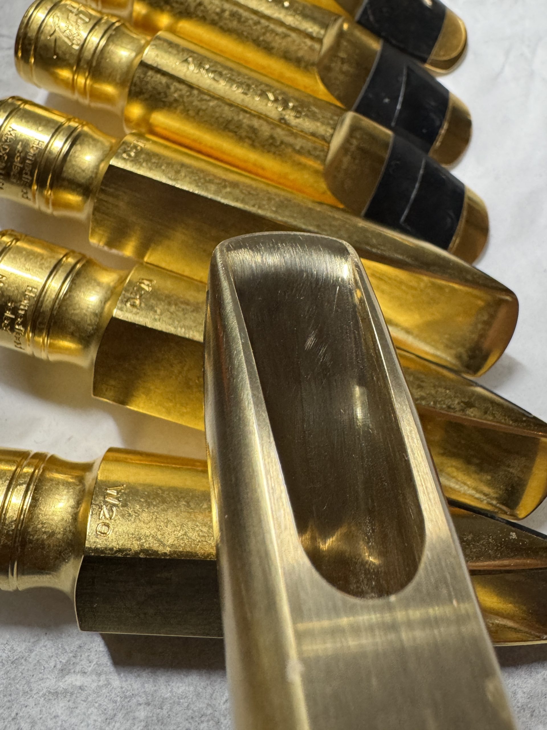 models, facings and finish methods I have reproduced this special mouthpiece. Having these technologies available I was able to replace lost material and absolutely optimize the configuration of the blank for the best playing result. The Archetype has the accurate tone of the old Quad Ring original yet offers many different options for setup and response.